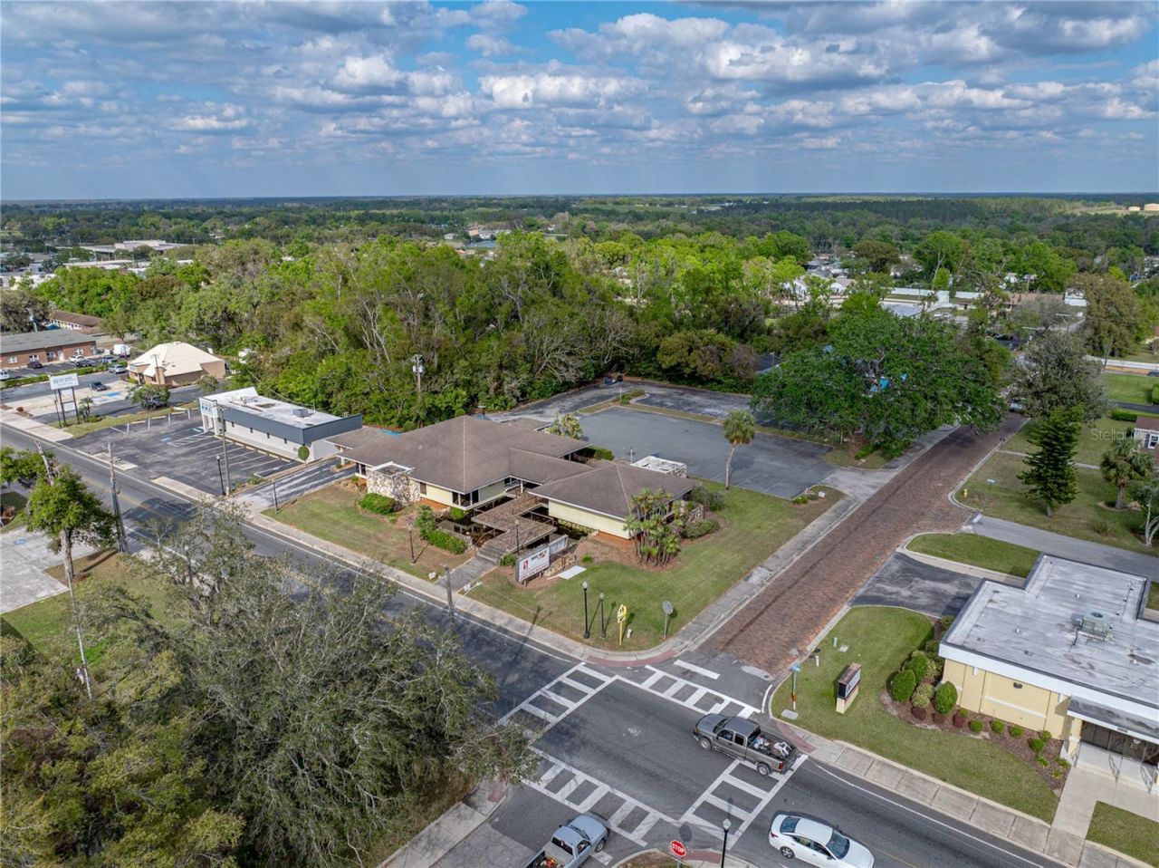 Seize the opportunity to establish your business in a highly visible, high-traffic location, with 200ft of 7th Street road frontage in the heart of Dade City. This prime corner-lot commercial building, zoned RIO, has 2 separate office buildings, totaling 4,534 sq ft, connected by a common canopy offering exceptional accessibility, ample on-site parking with 50 spaces, and a layout designed to accommodate a wide range of uses. In the first 3,424 sq ft building, the welcoming lobby sets the tone for a professional and inviting atmosphere inside. A dedicated conference area, 6 private offices, a break room with a kitchen, his and hers bathrooms, and generous storage rooms provide the functionality and flexibility needed for an efficient workspace. Adding to its unique appeal, the building retains its original bank vault- an amazing feature that presents creative possibilities for secure storage or a distinctive design element. The second 1,110 sq ft building features an open lobby/reception room, a private office, a full kitchen, and 2 bathrooms. Positioned in a thriving business district with excellent visibility and easy access, this property is ideal for offices, financial services, retail, and more. Don't miss this unparalleled opportunity to invest in a prime commercial asset in Dade City's growing market. Contact us today for more details on what RIO zoning will allow and to schedule a private tour.