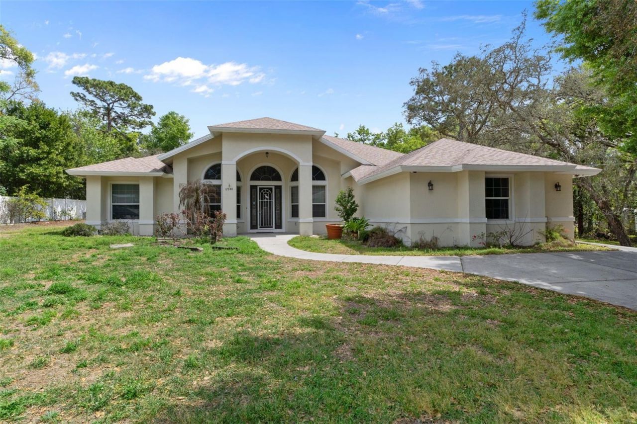 Experience refined country living in this exquisite custom-built 5 bedroom, 2.5 bath Stunning Pool home with 2425 sq ft of living space and a 2 car garage set on 1.16 acres of serene, fully fenced property. There are no deed restrictions and no HOA and this amazing home is located in an X flood Zone with Agricultural zoning. Thoughtfully designed with both elegance and functionality in mind, this home offers privacy, sophistication, and exceptional indoor-outdoor living. A Grand entry leads into a beautifully appointed great room featuring a wonderful wood burning fire place and custom built shelving, creating a warm yet upscale atmosphere ideal for both relaxing and entertaining. The Exterior of the home was freshly painted in 2023, the entire home has Gorgeous tile flooring, and fresh interior paint. The expansive kitchen is a chef's dream, showcasing solid oak cabinetry, gleaming granite countertops, newer stainless steel appliances, large pantry and a charming breakfast nook with a bay window overlooking the sparkling pool and jacuzzi-bringing natural light and picturesque views into your everyday routine. Step outside to your private resort-style retreat, where a stunning Pool and Luxurious Jacuzzi are surrounded by elegant pavers, offering the perfect setting for entertaining or unwinding in complete tranquility. Enhancing the outdoor experience even further is a gorgeous gazebo paired with a solid concrete table and benches, creating an inviting setting for al fresco dining, morning coffee, or evening cocktails. The spacious primary suite is a true sanctuary, featuring a jetted garden tub, dual granite vanities with beautifully crafted cabinetry, a step-in shower, and an oversized walk-in closet. Additional highlights include an interior laundry room with built-in cabinetry and utility sink, a full security system, and a brand-new roof installed in 2022. The versatile fifth bedroom includes its own private half bath-ideal for guests or multi-generational living-while the second bedroom enjoys direct access to the pool bath, complete with a tub/shower combo, elegant vanity, and French door leading to the outdoor living area. All four of the guest bedrooms have large closets and fan/lights. Completing this exceptional property is a massive insulated metal 24 X 34 building newly added in 2019 with its own driveway and A/C. There is an additional large metal shed, and ample space for all your recreational vehicles, equipment, and hobbies. This one-of-a-kind property seamlessly blends luxury, comfort, and country charm and delivers the perfect blend of PRIVACY, and rural charm, an extraordinary place to call home. Conveniently located near nature preserves, beaches, golf courses, schools, hospitals, shopping and dining, with access to major roadways....just minutes to the Suncoast Parkway and approximately one hour from Tampa. Schedule your private tour today and experience the endless possibilities this amazing property offers !!