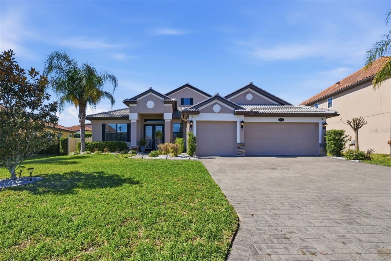 One or more photo(s) has been virtually staged. Welcome to Terralargo a gated community, conveniently located just minutes from Lakeland Square Mall. This 5-bedroom, 4-bathroom, 3-car garage home offers a functional layout and numerous upgrades, featuring a paver driveway, mature landscaping, and a newer barrel tile roof tile. Double glass entry doors open to high ceilings and wood flooring throughout the main living areas, with a formal dining room, private den/office, and an open-concept living space filled with natural light. The kitchen includes a large center island, quartz countertops, ample cabinetry, and updated appliances (2021), ideal for everyday living and entertaining. The spacious primary suite features a tray ceiling and en-suite bath with dual sinks, a garden tub, and a separate shower, while additional highlights include generously sized secondary bedrooms, a full pool bath, a separate laundry room, and an upstairs bonus room with a full bath. Outdoor living is enhanced by a covered and screened lanai with a custom pool and spa, creating a private setting for relaxation and gatherings. Recent updates include 2021 kitchen appliances, lighting, and ceiling fans; 2022 primary closet system; 2023 flooring, baseboards, interior paint, kitchen backsplash, and 3.5-ton downstairs HVAC; 2024 gutters, feature walls, landscaping, and office lighting; 2025 driveway sealing and security system; and 2026 vinyl privacy fence, exterior paint, and refreshed primary suite. Residents enjoy resort-style amenities, including a heated beach entry pool, spa, 24-hour fitness center, clubhouse, and sports courts (tennis, pickleball, basketball), conveniently located between Tampa and Orlando. Schedule a showing today.