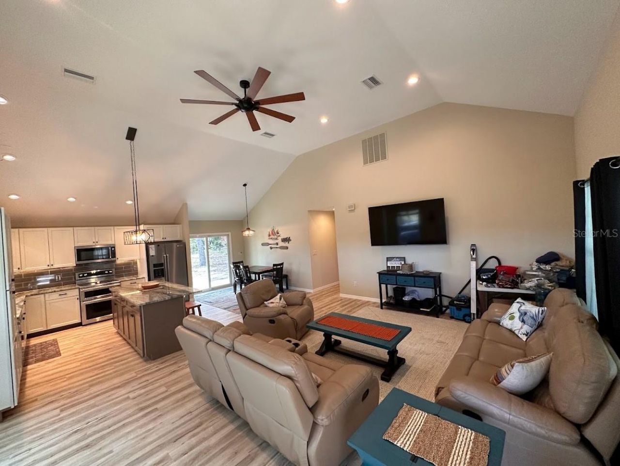 Newly built in 2024 custom built home nestled on LITTLE LAKE KERR. Three bedrooms 2 bathrooms and a spacious open floor plan with cathedral ceilings. Kitchen has granite countertops and undercabinet lighting. Back yard has plenty of parking! Central A/C & Heating, washer/dryer, Private Dock on Canal. Private Community Perks: Clubhouse, Boat Launch, Picnic Area. This lake's setting within the forest provides opportunities for wildlife. Within 3 miles to Salt Springs Recreation Park!