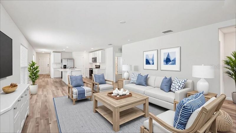 One or more photo(s) has been virtually staged. Under Construction. Welcome inside the Harper, a single-story, four bedroom and two bathroom home, offering 1,665 square feet of luxurious living space. The open-concept layout seamlessly connects the living room, dining area, and kitchen, creating a perfect space for entertaining with family and friends. With ample room for seating, it's an ideal spot for relaxation and gatherings. The kitchen features quartz countertops, stainless steel appliances, and a kitchen island. Whether you're preparing a casual meal or hosting a formal dinner, this kitchen is well-equipped to meet your culinary needs. The primary suite features a private ensuite bathroom with a double vanity and spacious walk-in closet. The remaining three bedrooms share a bathroom, and have carpeted floors and closets in each room. The Harper also includes a two-car garage and dedicated laundry room with a washer and dryer hookup. The Harper is complete with a state-of-the-art smart home system. Pictures, photographs, colors, features, and sizes are for illustration purposes only and will vary from the homes as built. Home and community information including pricing, included features, terms, availability and amenities are subject to change and prior sale at any time without notice or obligation. CRC057592