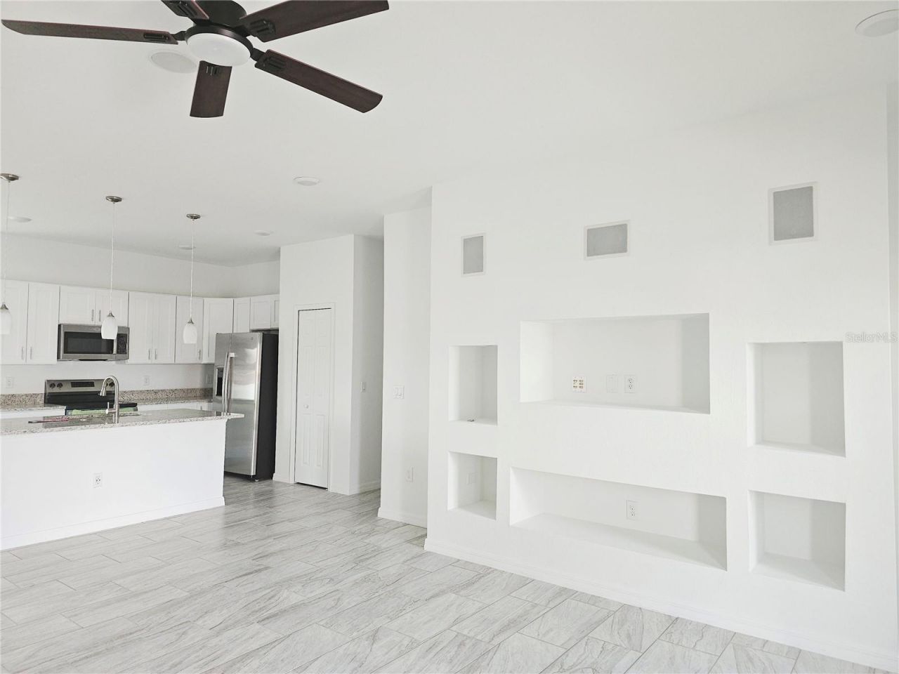 This beautiful NEW CONSTRUCTION 4-bedroom, 2.5-bath home with a 2-car garage is move-in ready and thoughtfully designed for comfort and style. The open-concept kitchen features granite countertops, sleek modern cabinetry, and plenty of space to gather. Tile flooring flows through the main living areas, while all bedrooms are finished with soft gray carpeting for added comfort. The spacious owner's suite offers dual vanities and a well-designed layout, creating the perfect retreat after a long day. A dedicated wall space is available for an electric fireplace, adding a cozy touch to the living area. Step outside to a large covered lanai - ideal for relaxing evenings or entertaining guests. Energy-efficient double-pane windows enhance comfort while helping reduce utility costs. Please note: Washer and dryer are not included; however, the home is equipped with washer and dryer hookups. Conveniently located near shopping, hospitals, and schools, this home blends style, comfort, and accessibility. For qualified prospects who may not be ready to purchase at this time, the owner is open to discussing a potential future sale opportunity. Schedule your private showing today.